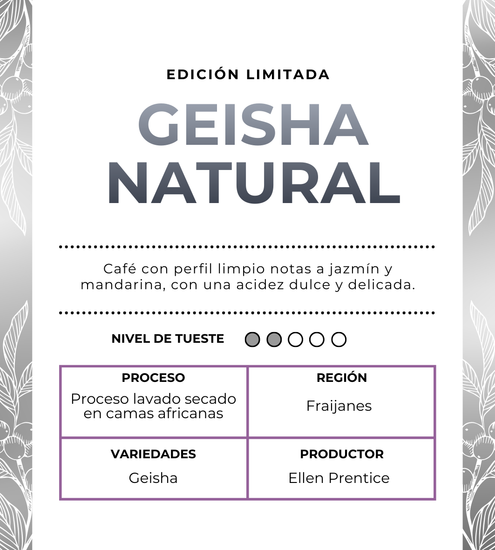 HISTORIA: Nuestro Grand-Cru Series edición limitada está disponible! Incluye variedades exóticas y procesos de nuestra finca premiada por la taza de la excelencia. Estos microlotes fueron seleccionados por su increíble calidad y características para crear una experiencia inolvidable de cafés. Disponibles para pre-ordenar, lo enviamos recién tostado a la puerta de tu casa. Reserva el tuyo hoy. Elegante y refinado, nuestro GEISHA LAVADO, está variedad proviene de Etiopía y es venerado como uno de los cafés más famosos y codiciados del mundo. Esta delicada variedad, similar al té, presenta una acidez brillante y refinada con notas florales de jazmín y la dulzura cítrica de la mandarina. Cada lata contiene 8oz de café recién tostado. |
