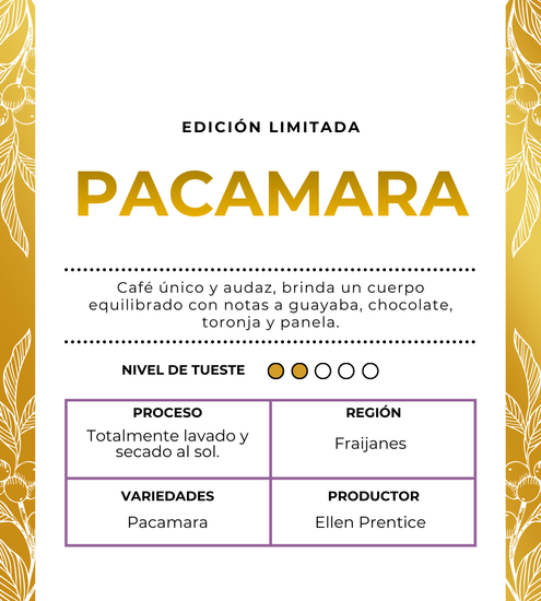 Pacamara (una variedad exótica de grano grande) |