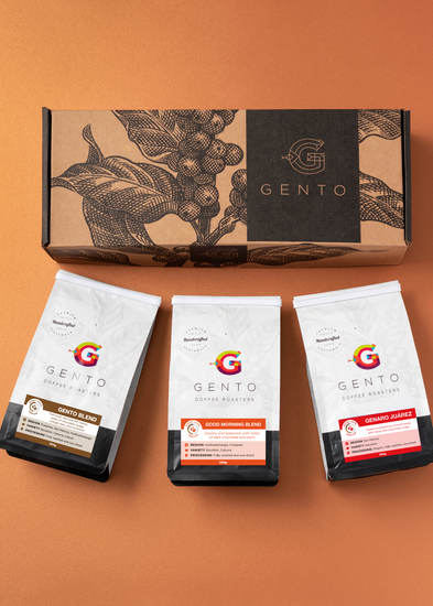 Una caja con 3 cafés de tuestes medios para los amantes del café que desean sus cafés dulces y balanceados. Esta caja incluye 3 cafés de 300g: |
